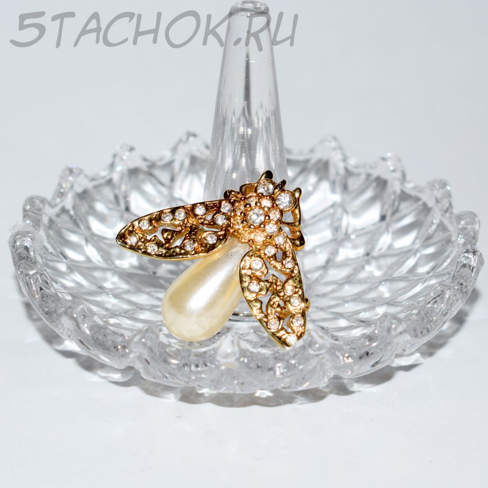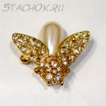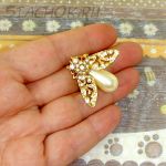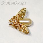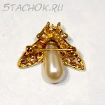 Нежная, оригинальная брошь. Выполнена в цвете блестящего золота с использованием камушка под искусственный жемчуг и австрийских кристаллов. Мушка ярко переливается при любом освещении.