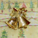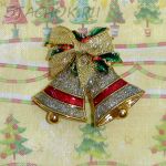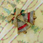 Брошь "Новогодние бубенчики" под золото/эмаль/блестки/текстиль