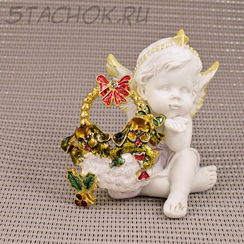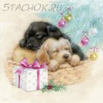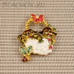 Брошь "Новогодние песики в подарочной корзинке" (США)