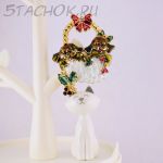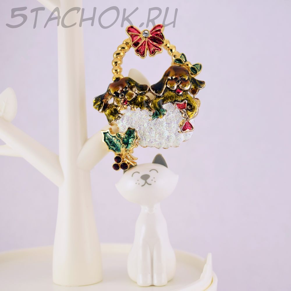 Брошь "Новогодние песики в подарочной корзинке" (США)