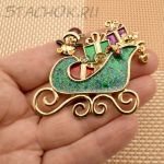 Брошь "Новогодние саночки с игрушками" (KC США)