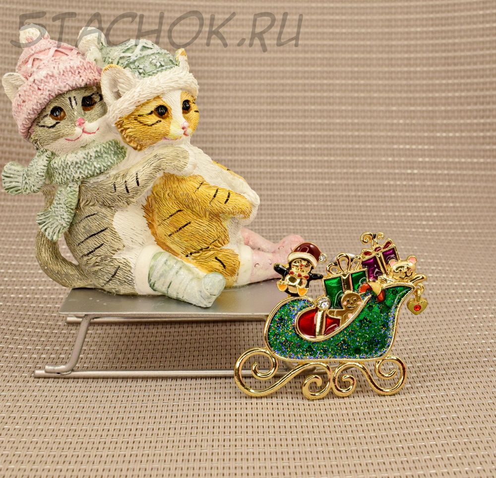 Брошь "Новогодние саночки с игрушками" (KC США)