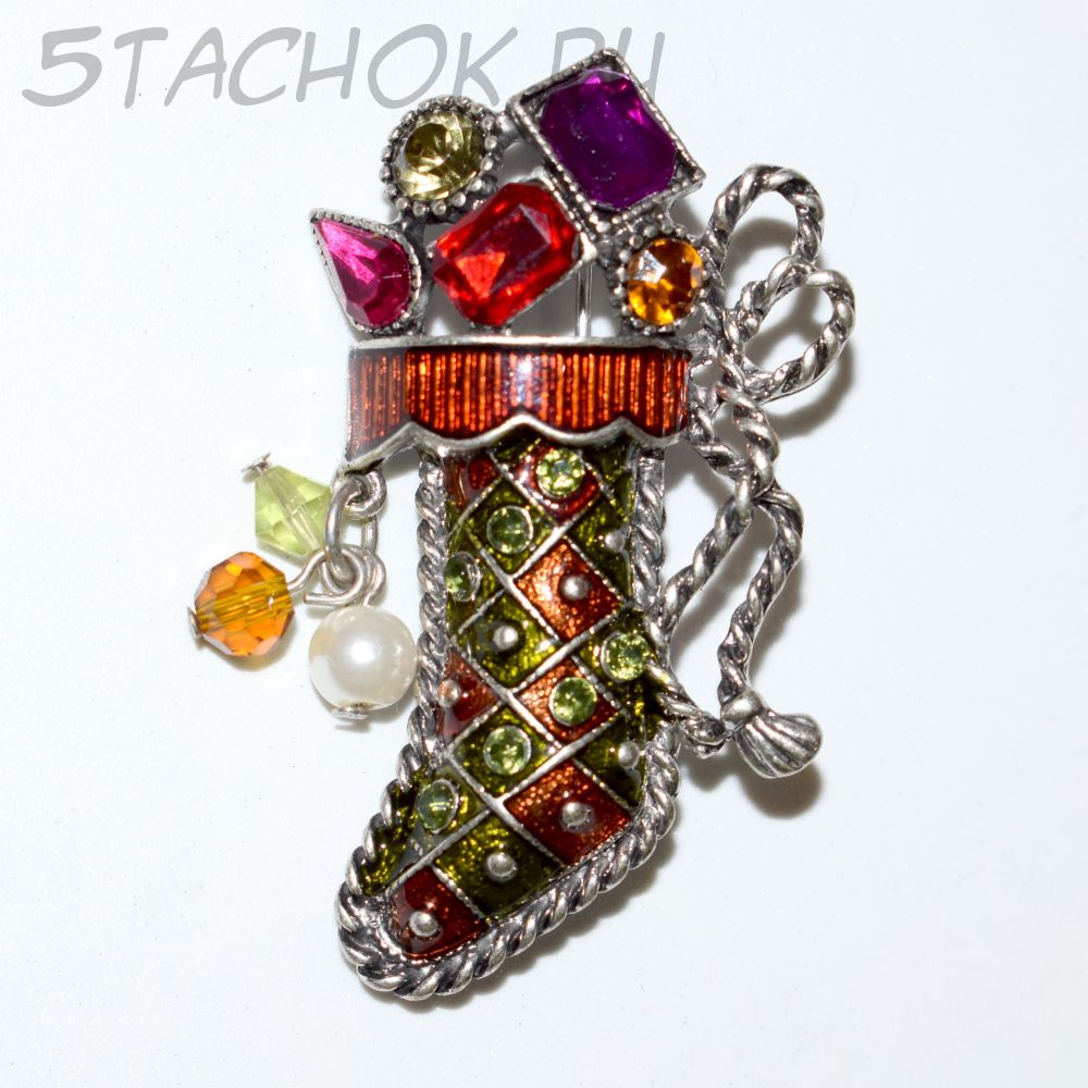 Брошь "Новогодний сапожок с подарками" (KC США)