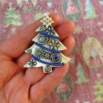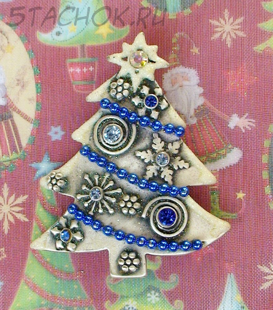 Брошь "Новогодняя елочка" под олово, блестки, эмаль, стразы