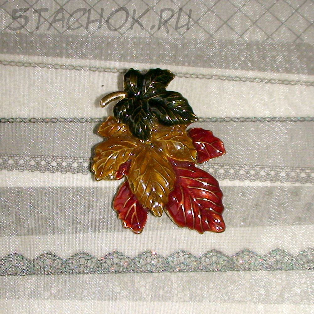 Брошь "Осенние кленовые листья" под золото, эмаль