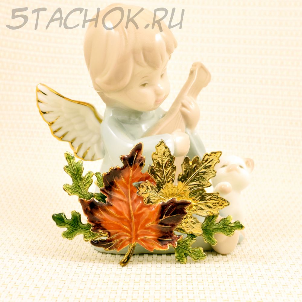 "Осенняя пора, очей очарование..." Выполнена брошь в цвете блестящего золота с использованием перламутровой эмали оранжевого, охристого и зеленого цветов. У листиков прорисованы жилки и фактура листочков.