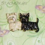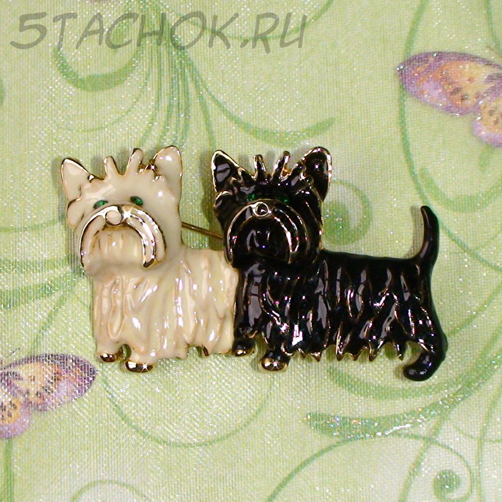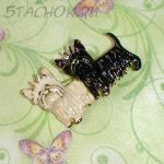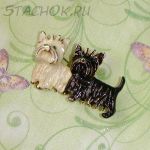 Брошь "Пара терьерчиков" под золото, эмаль, стразы