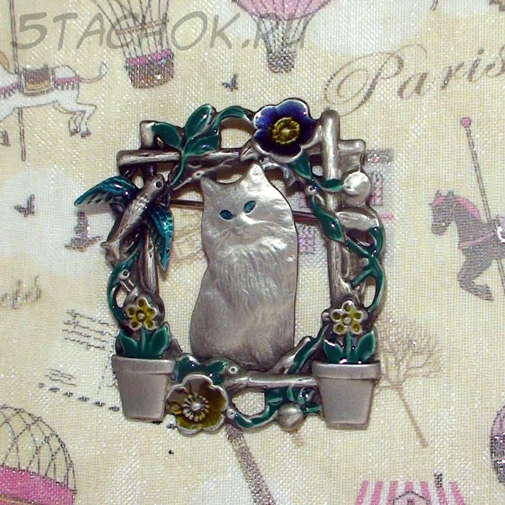 Брошь "Котик-милашка" под олово, эмаль
