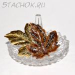 "Осенняя пора, очей очарование..." Выполнена брошь под блестящую золотую чеканку с использованием перламутровой эмали темного цвета. У листиков прорисованы жилки и фактура листочков.