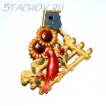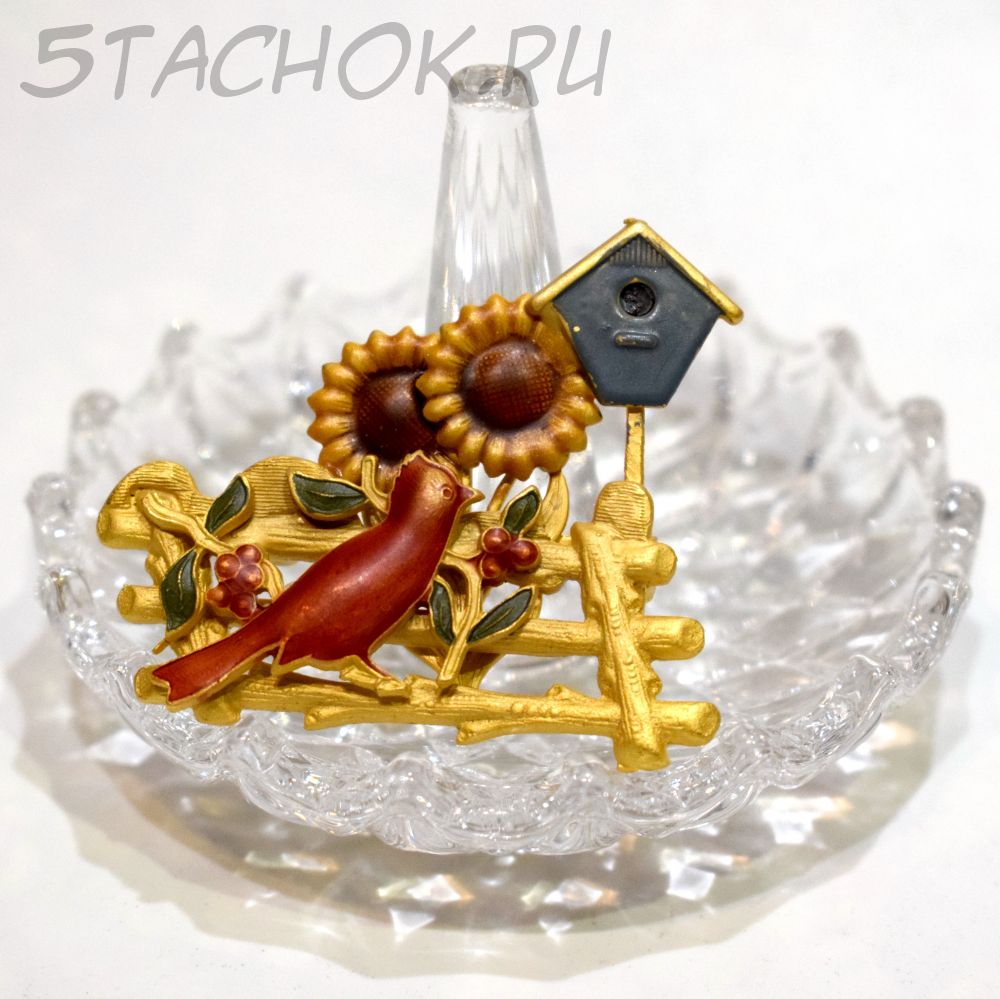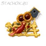Брошь "Птичка кардинал, подсолнечник и скворечник" (США)