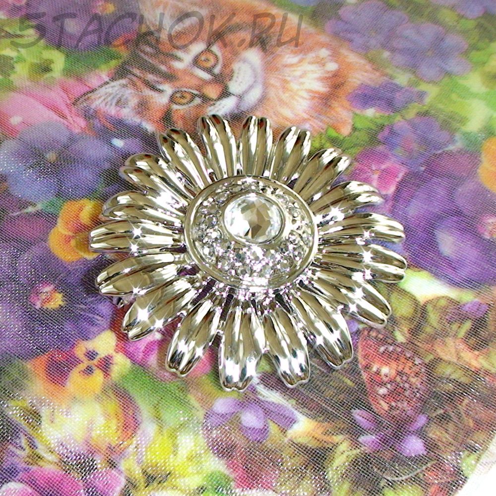 Брошь "Ромашка" под серебро/стразы