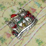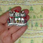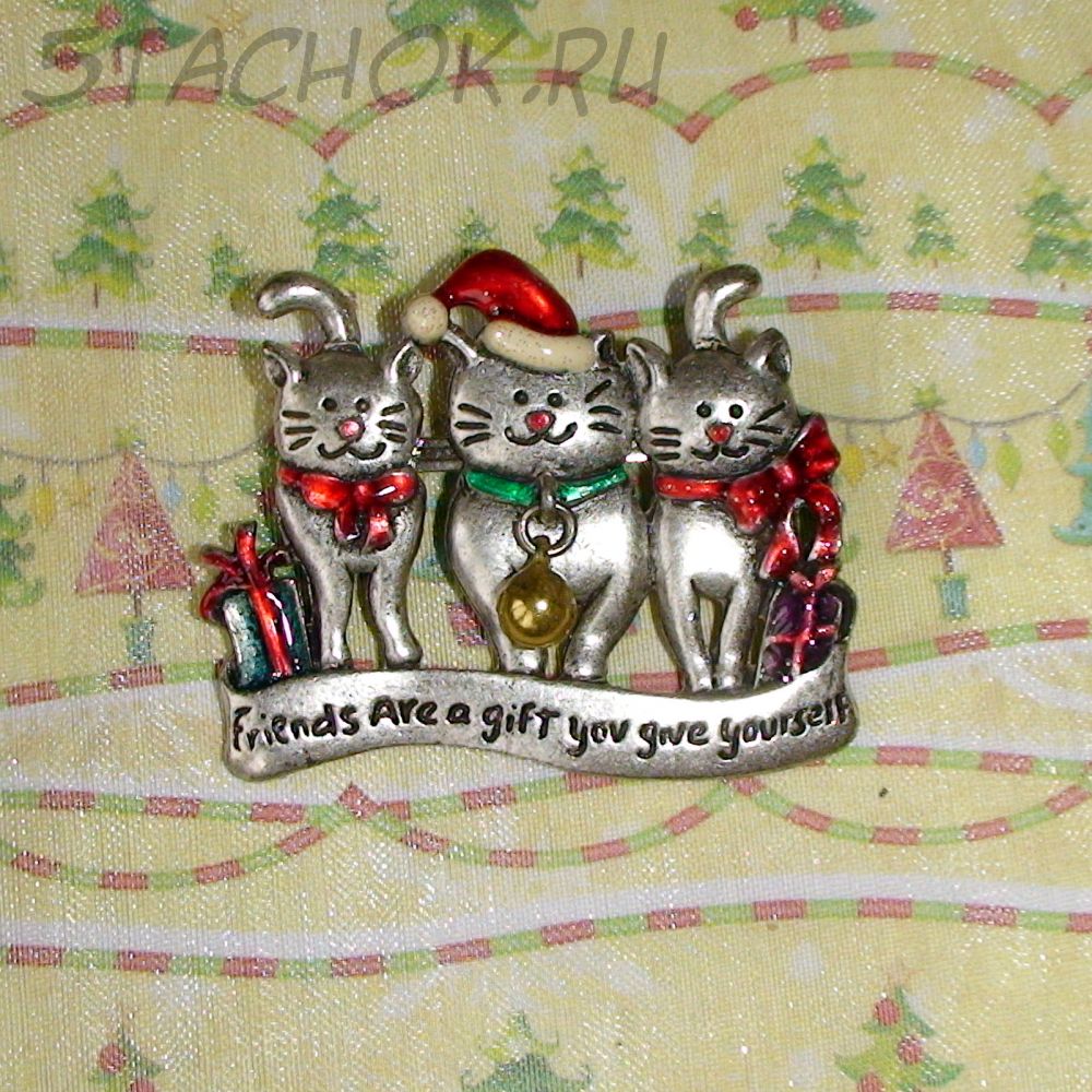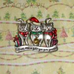 Брошь "Рождественские котики с подарками" под олово, эмаль