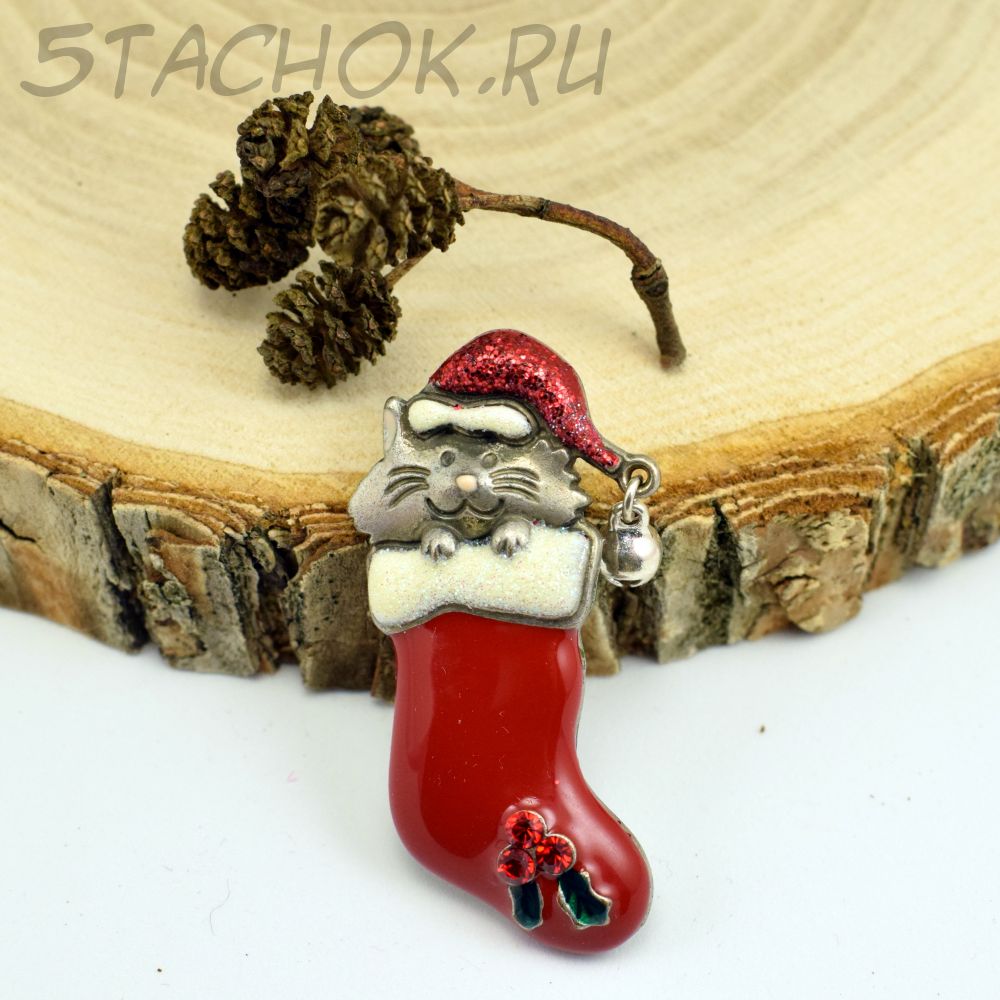 Брошь "Рождественский котик в чулке" (KC США)