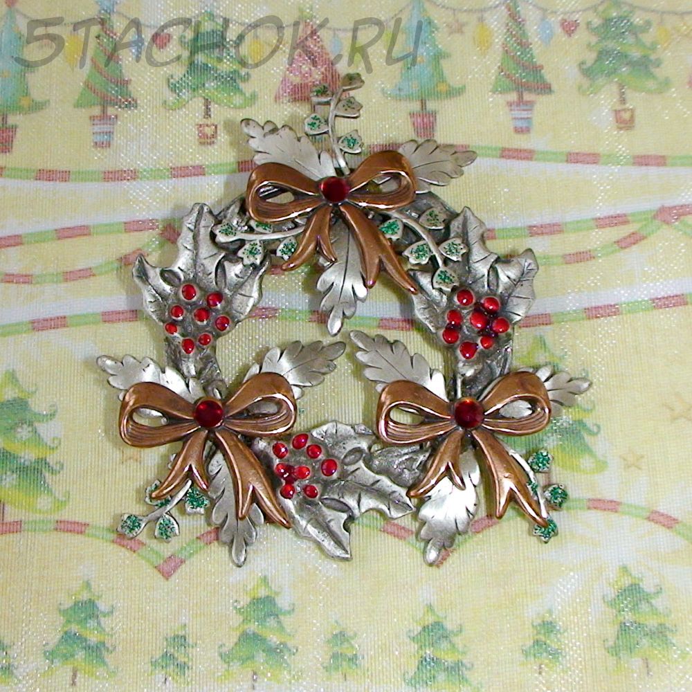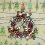 Брошь "Рождественский венок" под олово, медь, эмаль, стразы, блестки