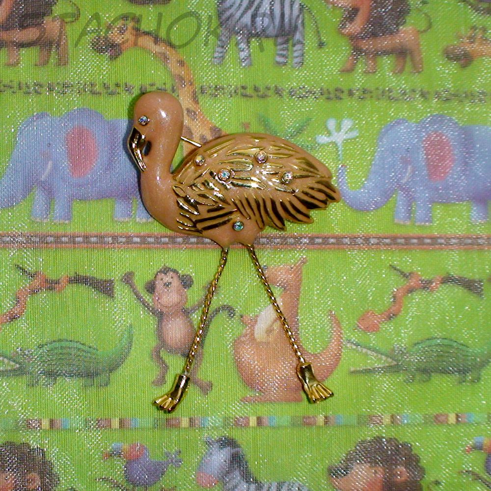 Брошь "Розовый фламинго" под золото/стразы/эмаль