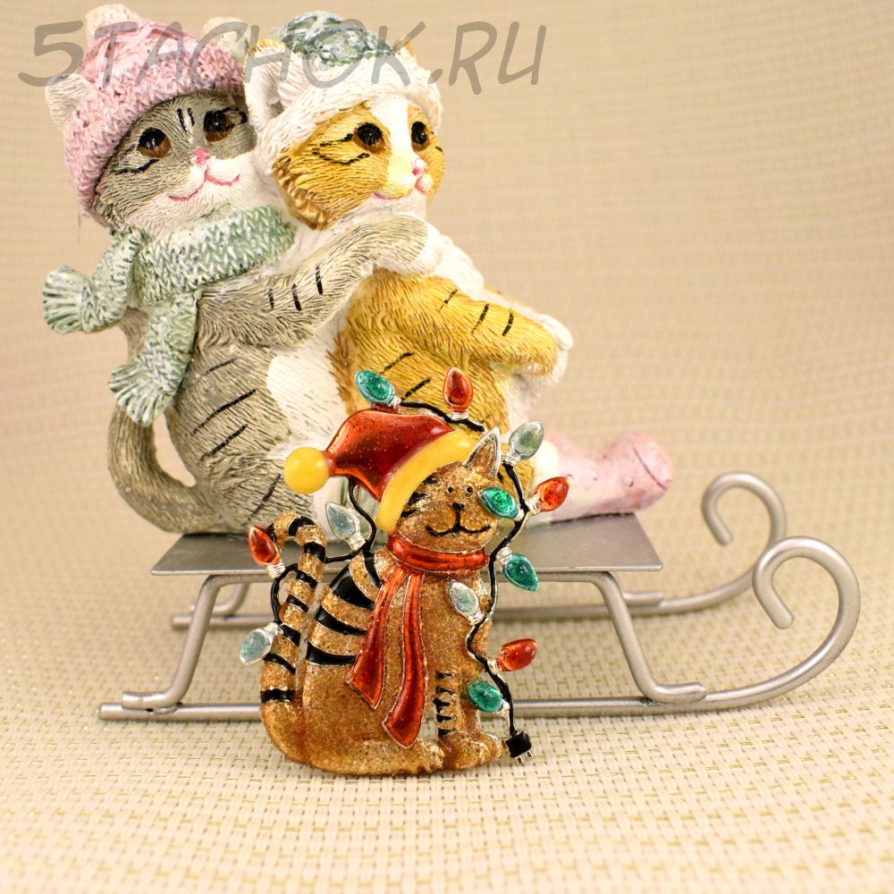 Брошь "Рыжий кот с гирляндой" (Danecraft США)