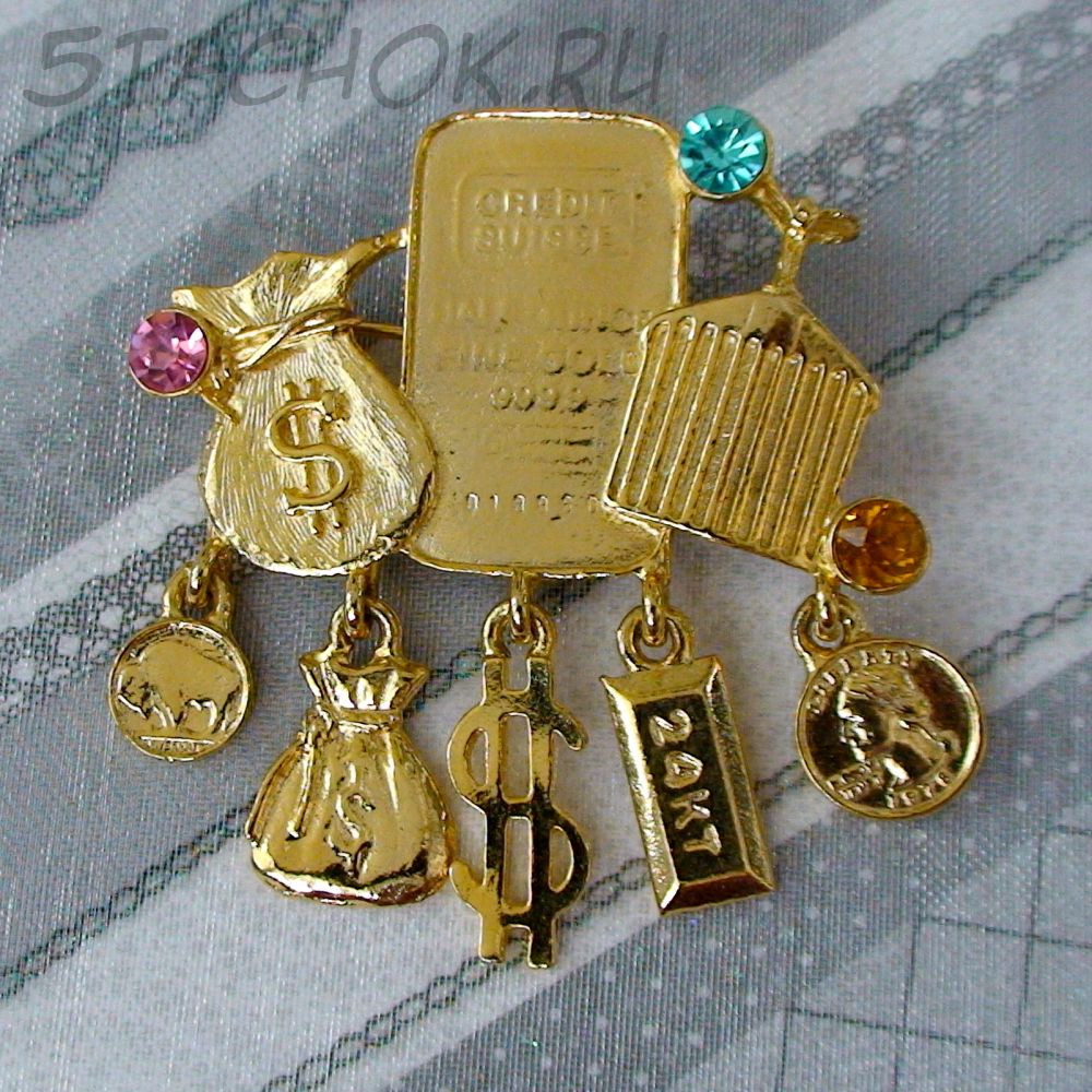 Брошь в отличном состоянии, ранее не использовалась. Кредитная карта, радиатор роллс ройза, доллары, слиток золота...