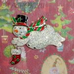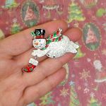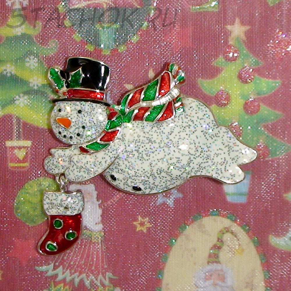 Брошь "Снеговичок" под серебро/эмаль/блестки