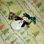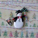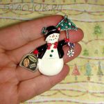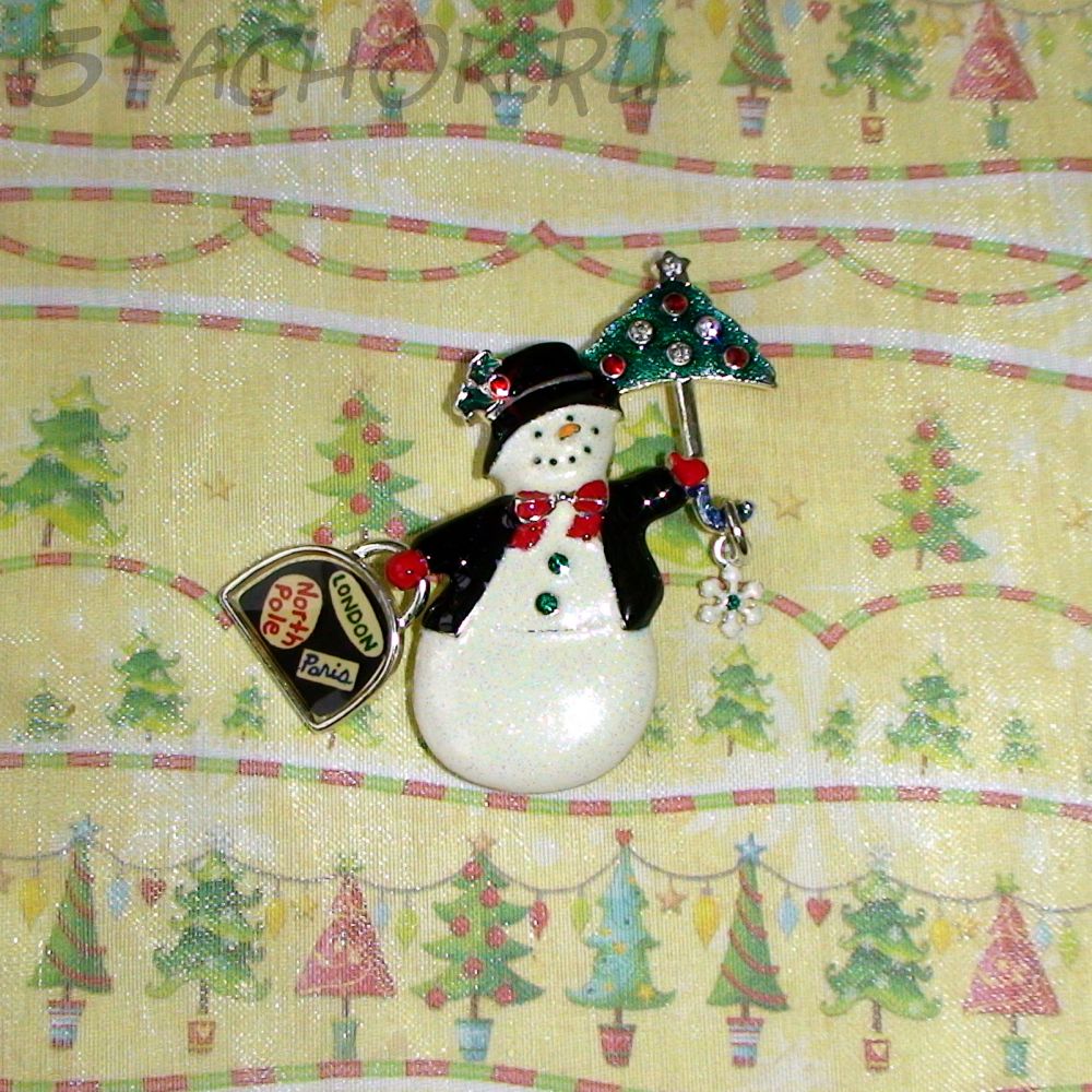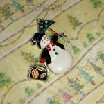 Брошь "Снеговик-путешественник" под серебро, эмаль, стразы