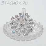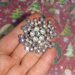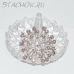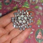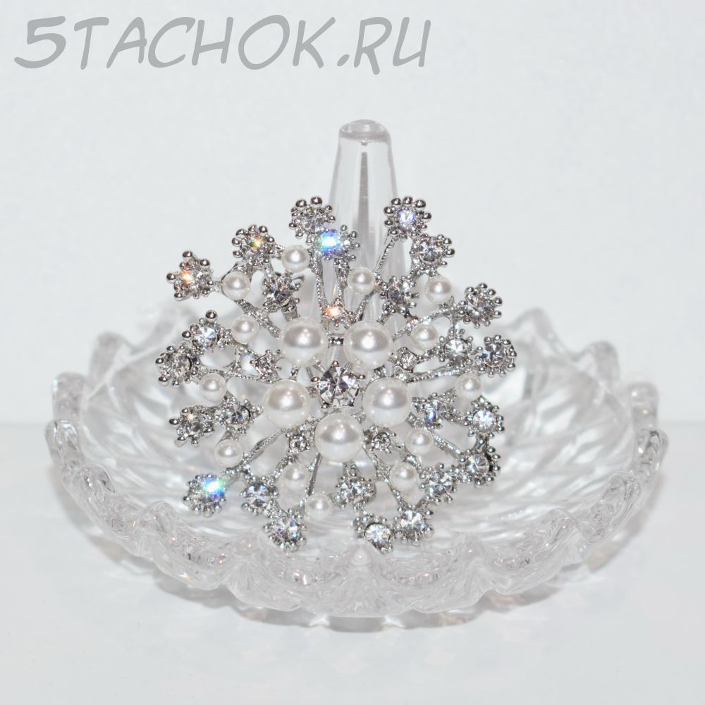 Брошь "Снежинка" под серебро, стразы, иск.жемчуг (США)