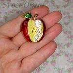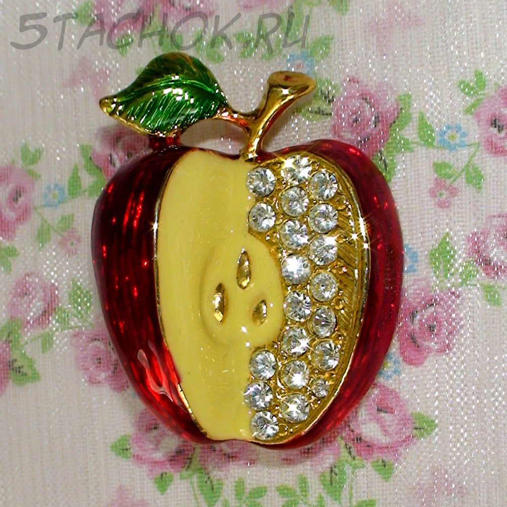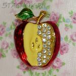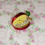 Брошь "Сочное яблочко" под золото/эмаль/стразы