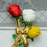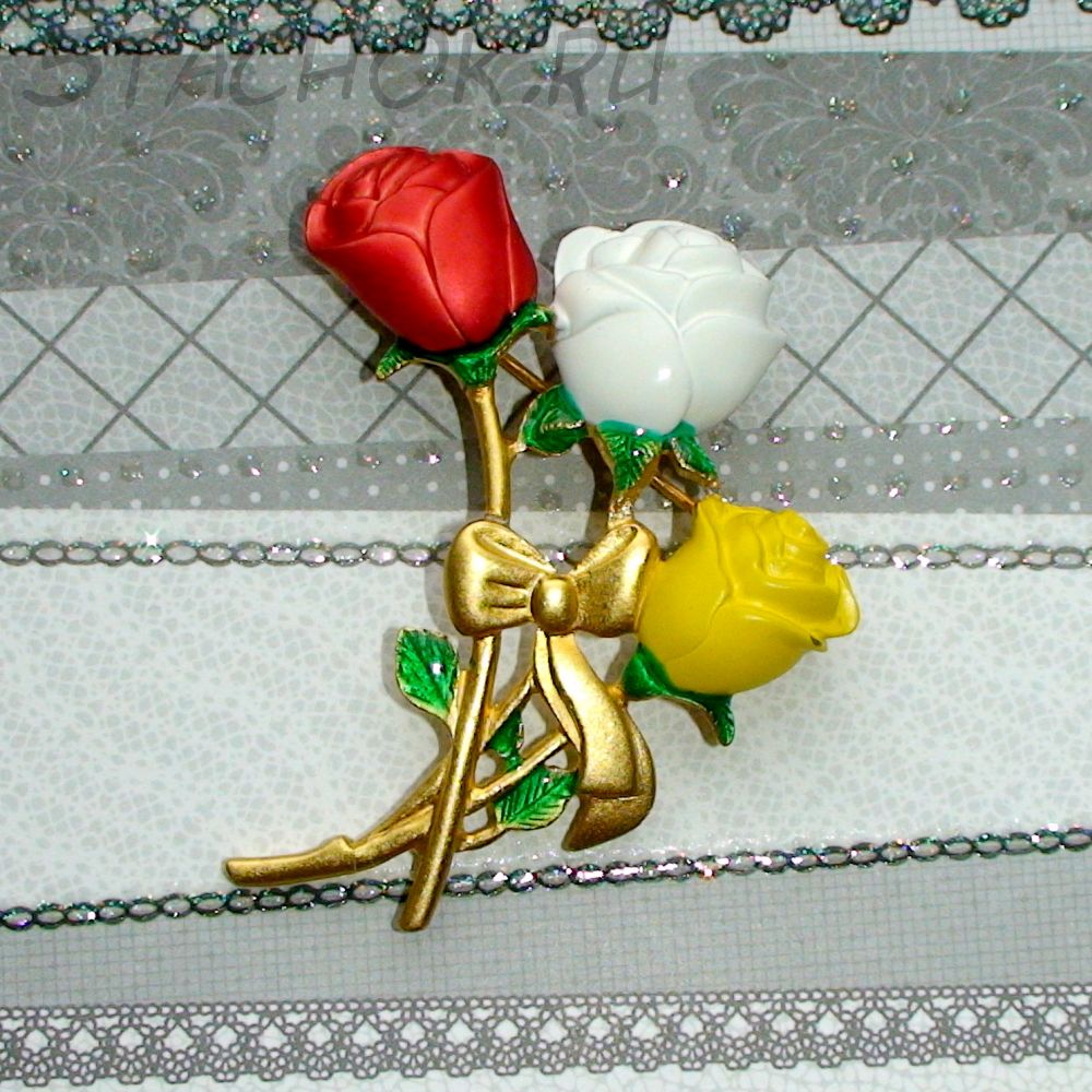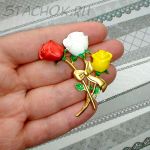 Брошь "Три розочки для любимой..." под золото, эмаль
