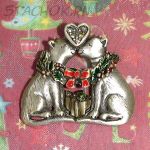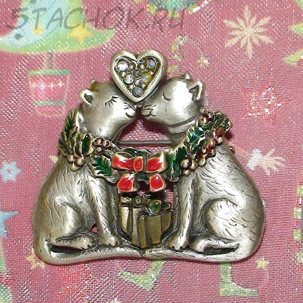 Брошь "Влюбленные котики на Новый год" под олово, эмаль, стразы