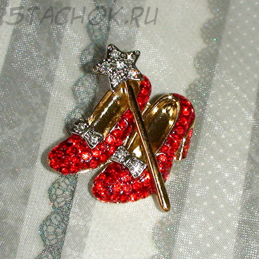 Брошь "Рубиновые туфельки Дороти" под золото, сваровски