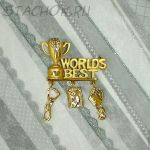 Рядом с красивым наградным кубком расположены: тонометр, рентген-снимок, фонендоскоп. Брошь выполнена под матовое и блестящее золото. В безупречном состоянии, ранее не использовалась.