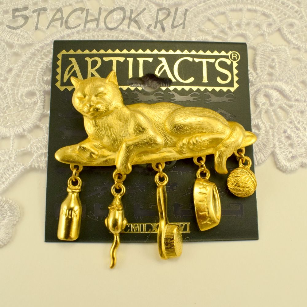 Брошь "Запасливый котик" цвет золота (JJ США)