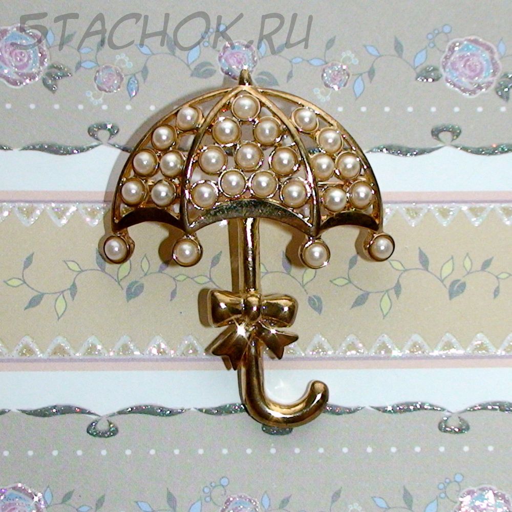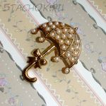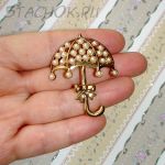 Брошь "Зонтик под дождиком" под золото/камушки (США)
