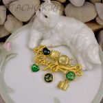 На броше изображены ножницы, клубочек с шерстью, спицы для вязания,ножницы, пуговички, шпульки с нитками.