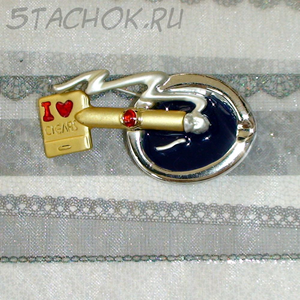 Брошь "Я люблю сигары" под серебро/золото/эмаль