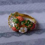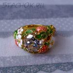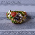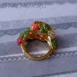 Кольцо "Земляничка" под золото, хрусталь, эмаль