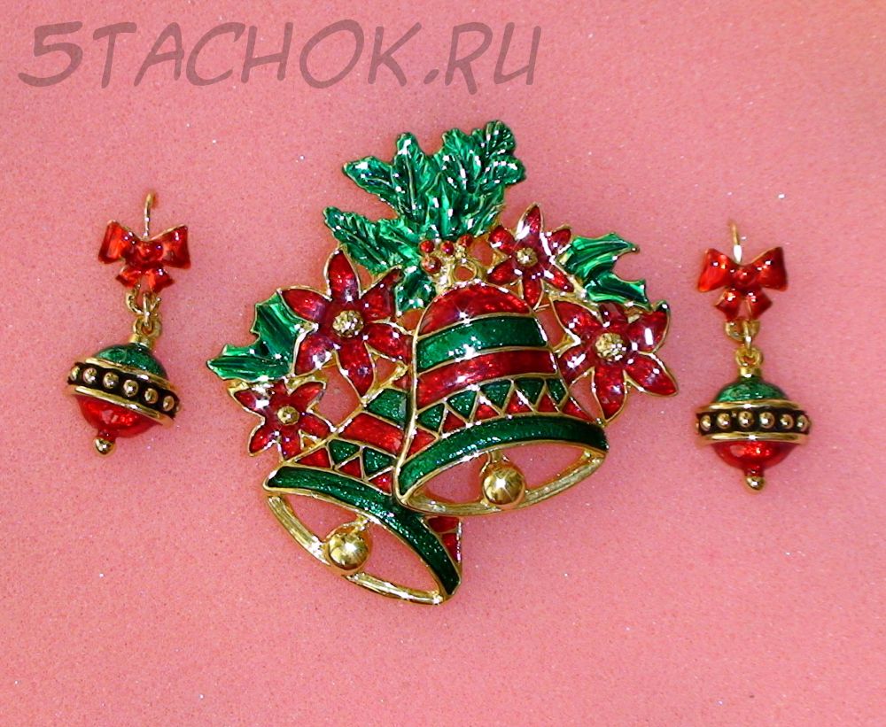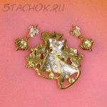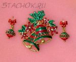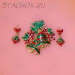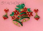 Комплект брошь и серьги "Новый год" под золото/эмаль