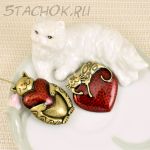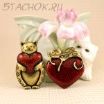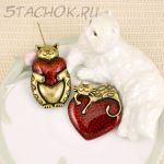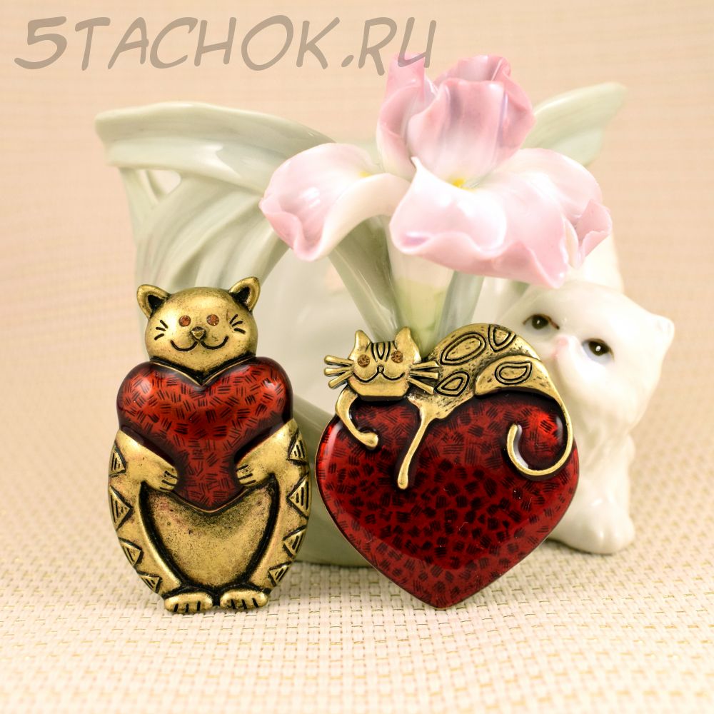 Парные броши "Котик и кошечка с сердцем" (Coldwater Creek, США)