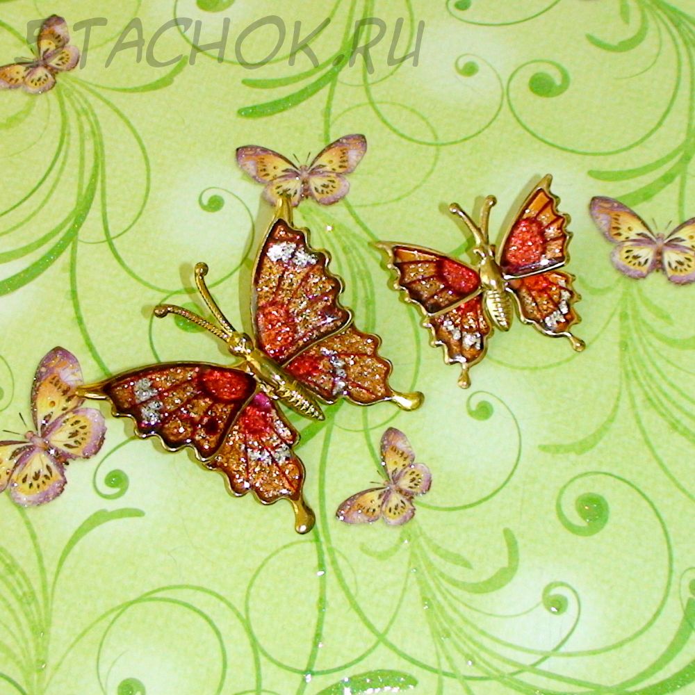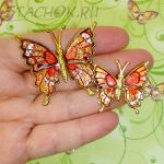 Парные броши "Оранжевые бабочки" под золото, эмаль