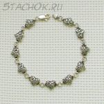 Серебряный браслет "Сердечки" черненое серебро 925 (США)