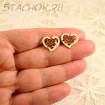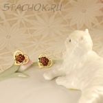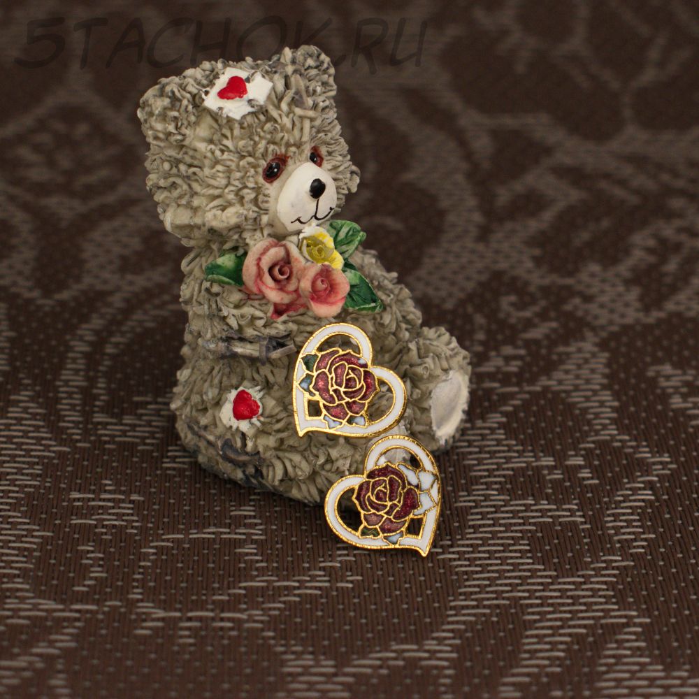Серьги "Розочки-сердечки" клуазоне (Тайвань/Китай)