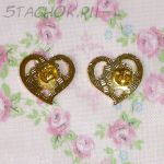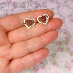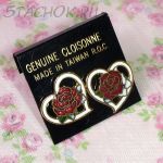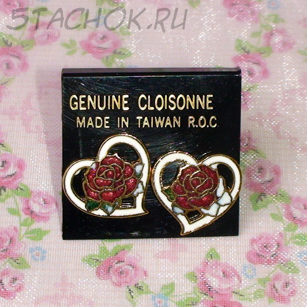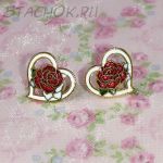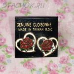 Серьги-гвоздики "Розочки-сердечки" под золото/клуазоне