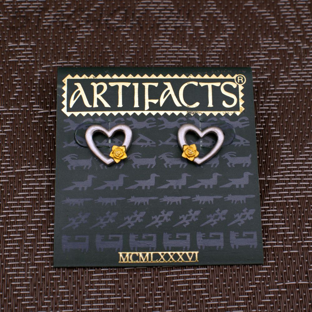 Серьги-гвоздики "Сердечко с розочкой" (JJ США)