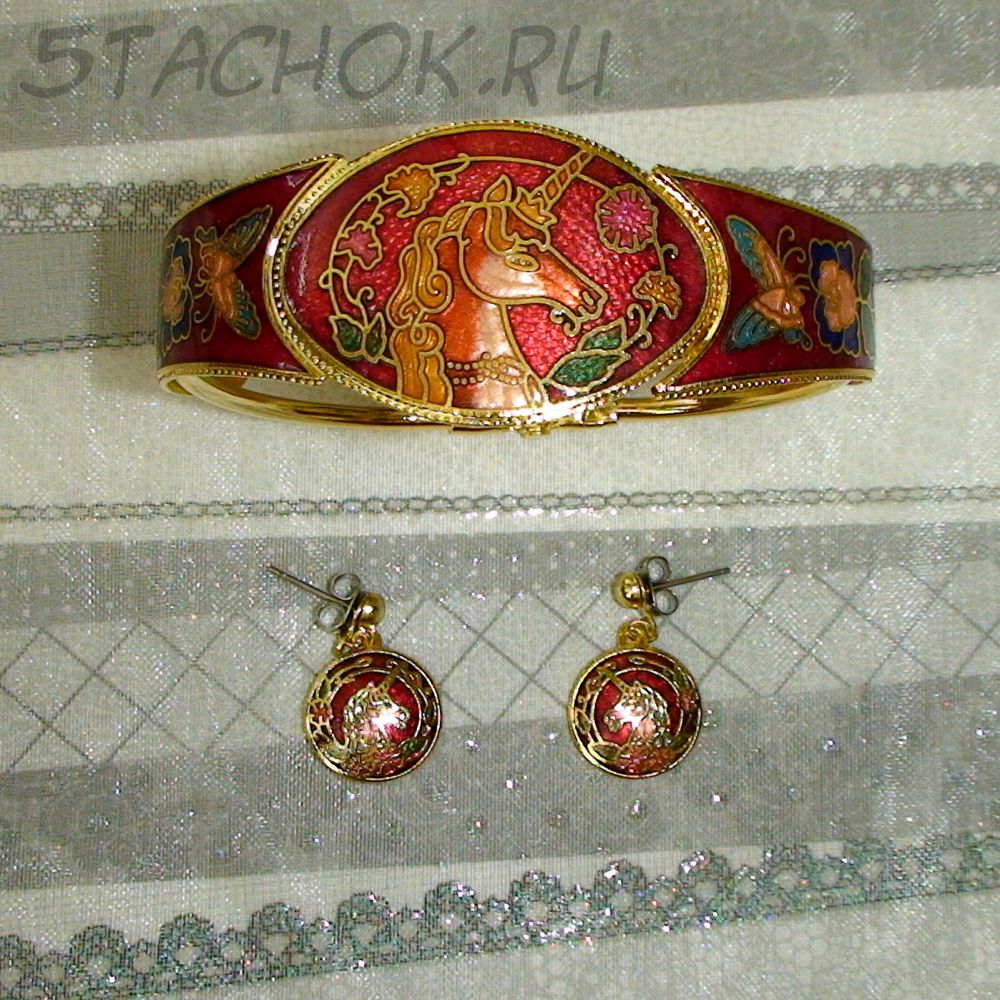 Изделия в безупречном состоянии, ранее не использовались. Подходит на запястие толщиной до 19см. Размер серьги-гвоздика 1,5*2,5см