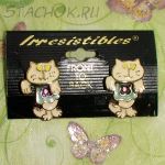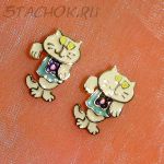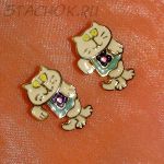 Серьги из половинок "Киски-милашки" под золото/эмаль
