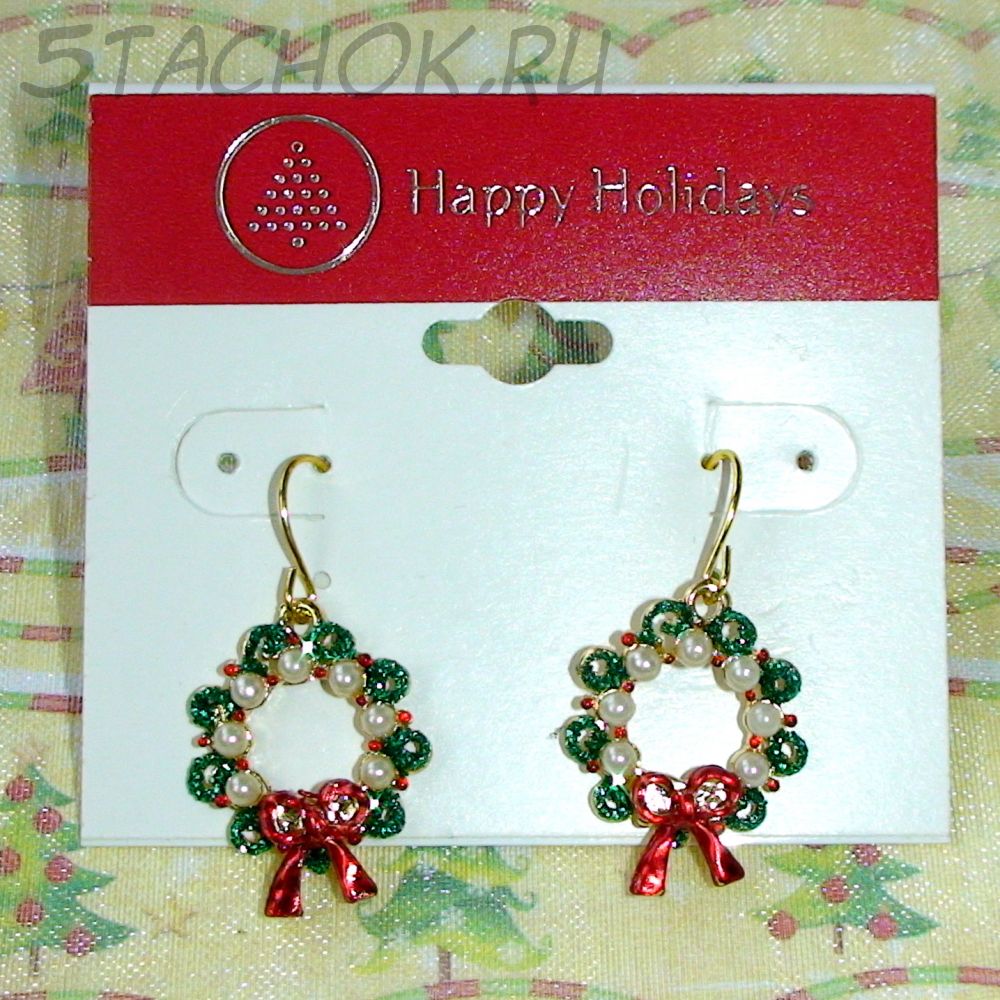 Серьги "Новогодняя гирлянда" цвет золота/эмаль/стразы (США)