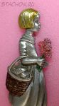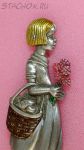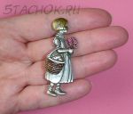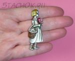 Брошь "Девочка с цветком и корзинкой" под олово, ювелирная эмаль