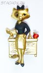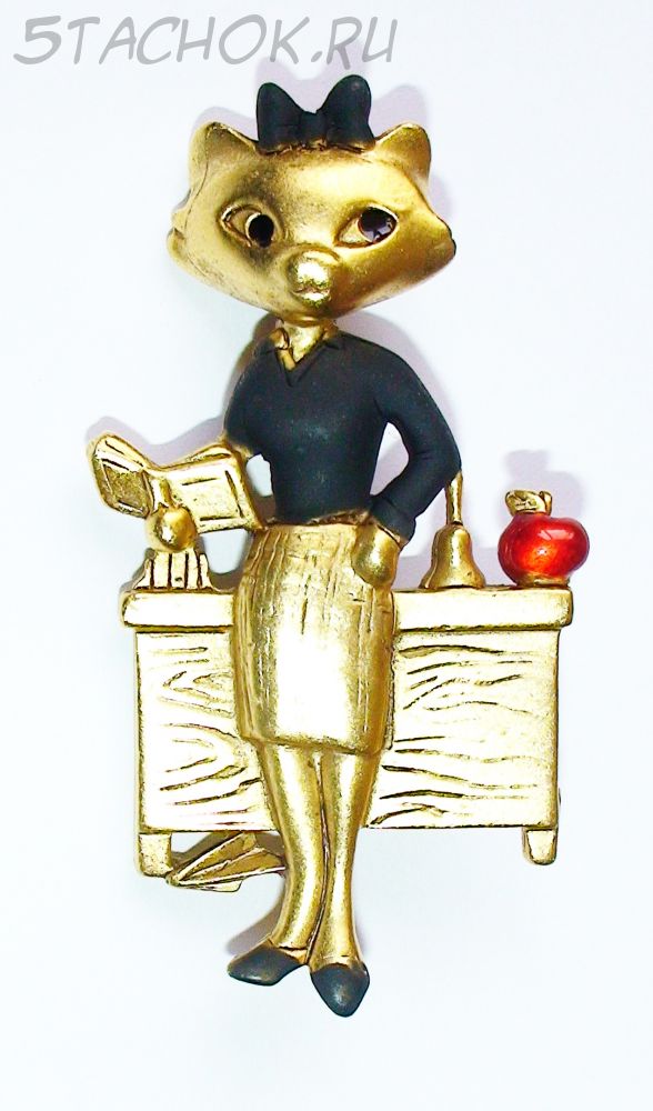 Брошь "Кошечка-учительница" под матовое золото, эмаль