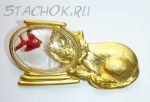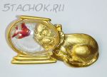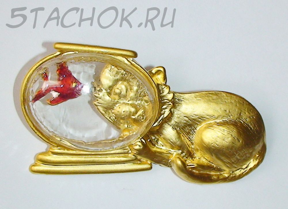 Брошь "Котик гипнотизирует рыбку " под золото/эмаль/оргстекло