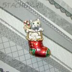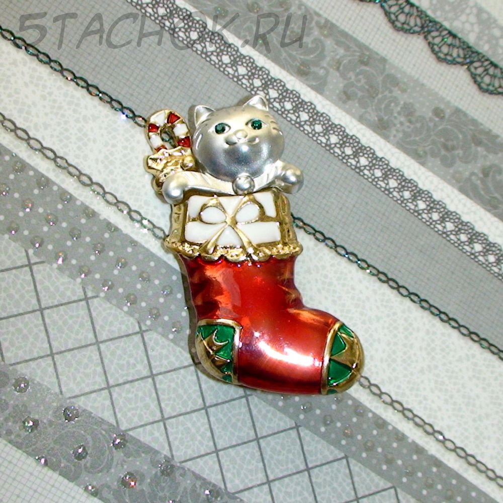 Брошь "Новогодний подарочек - котик" под золото/серебро/эмаль/стразы