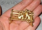 Брошь "Кошечка и котенок на скамейке" цвет золота (AJC США)