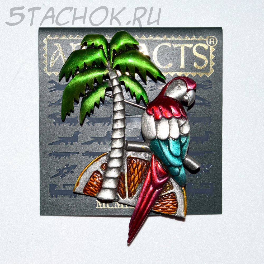 Брошь "Попугай, пальма, апельсин" (JJ США)